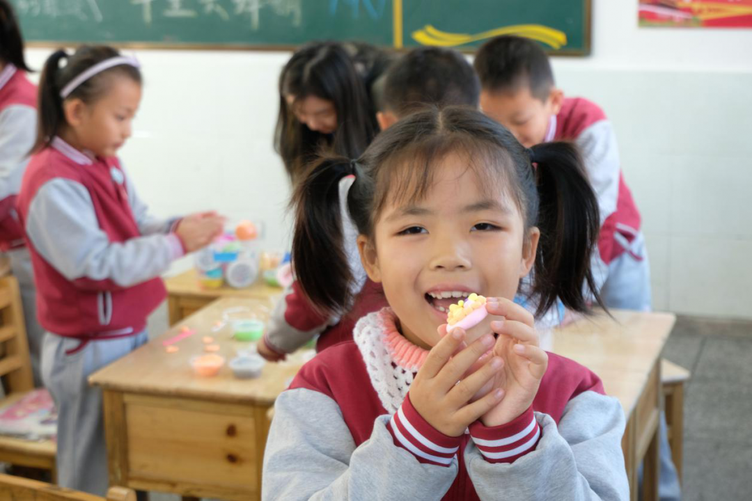 在兩年的支教時間里,面對條件的限制,我想盡辦法讓孩子們的生活更加豐富多彩。美術課上,帶著孩子們一起裝扮教室;體育課上,尋找有趣的活動和學生一起玩耍;大課間時,和孩子們一起跳舞;到了元旦,我買來蛋糕和孩子們一起慶祝;遇到兒童節,我和孩子們一起排練節目......我努力將儀式感帶給孩子,并在有限的時空里,尋找更多的樂趣。
