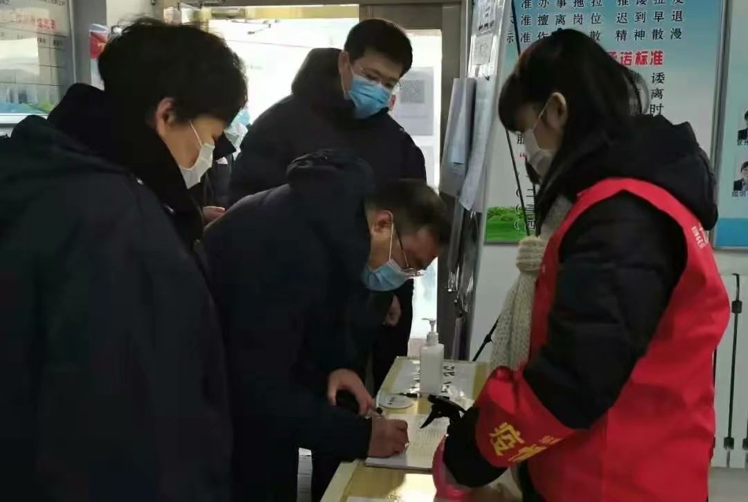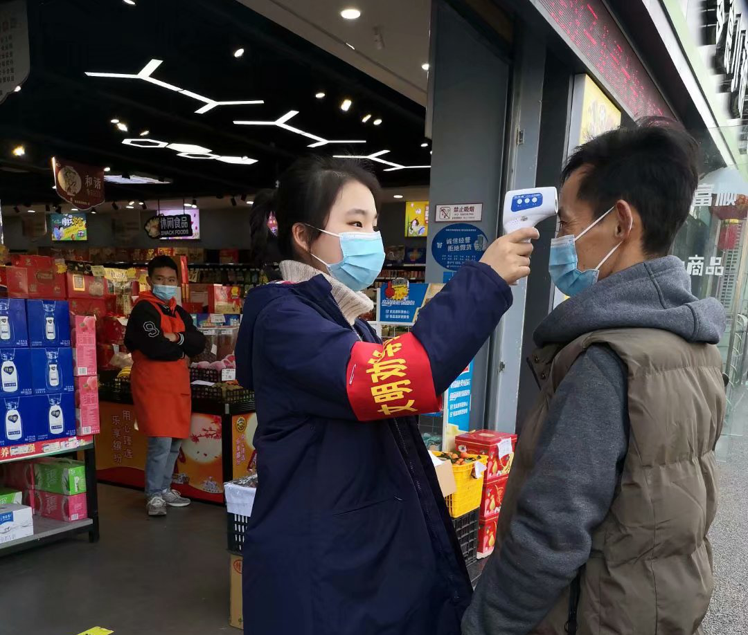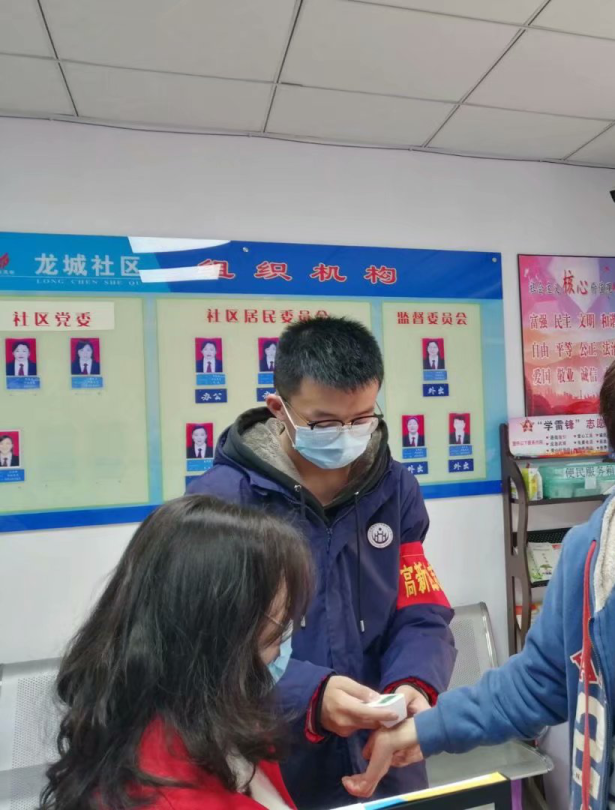 ▲ 協助社區開展入戶登記工作,為居民進行體溫監測,并簽署居家承諾書。