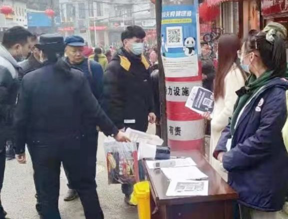 ▲ 走到街頭、路口、超市等地方,發放傳單,開展健康碼、行程碼等防疫宣傳咨詢工作。